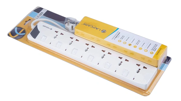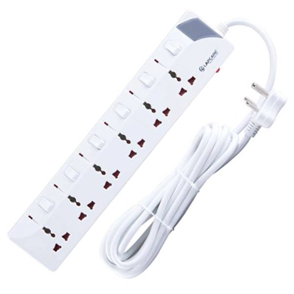 Lapcare 6 Way Extension Socket with Spike Buster 3 m Cable (White)