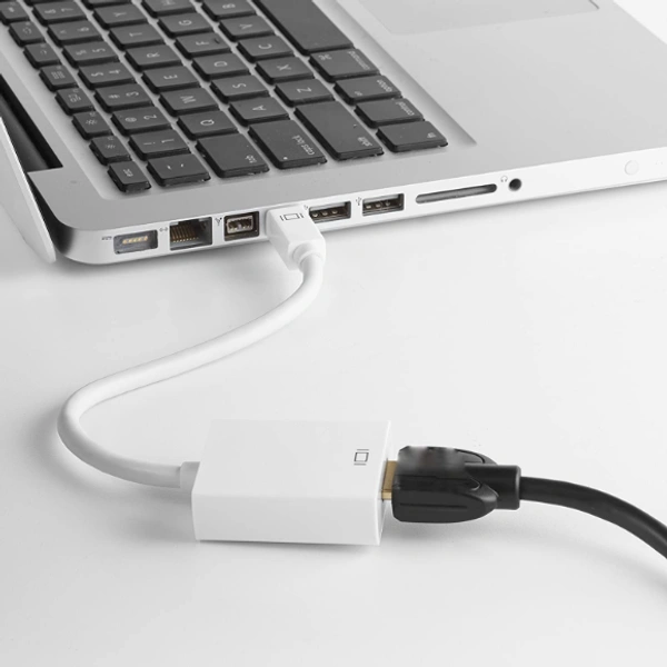 Adapts a Mini DisplayPort to a HDMI input